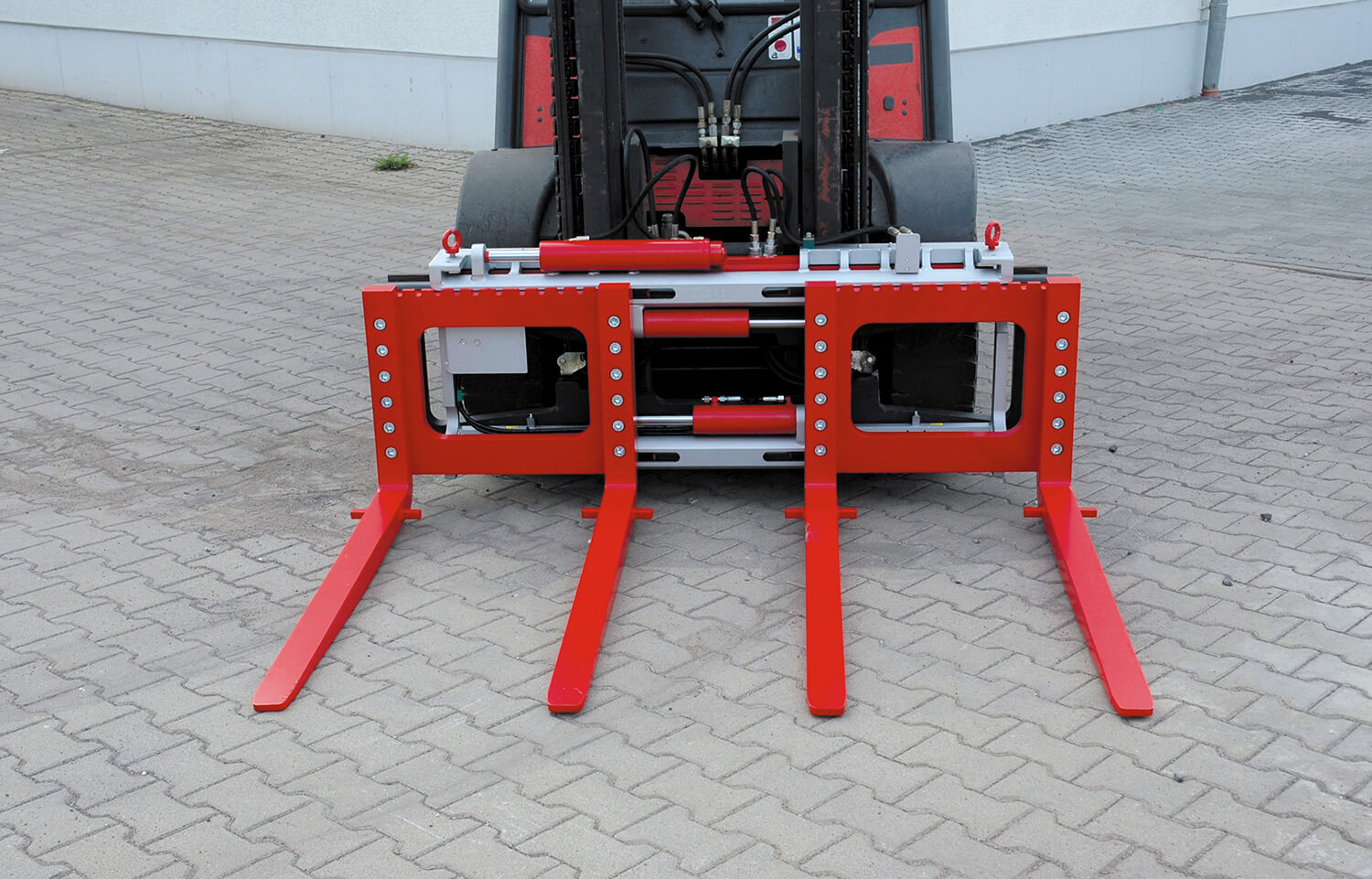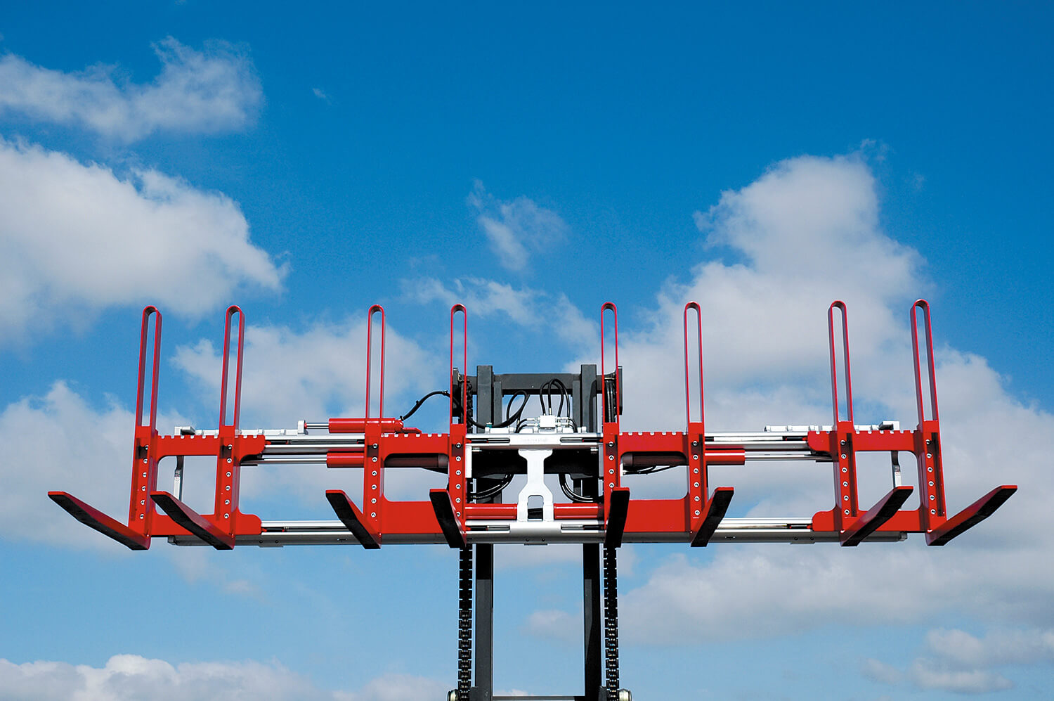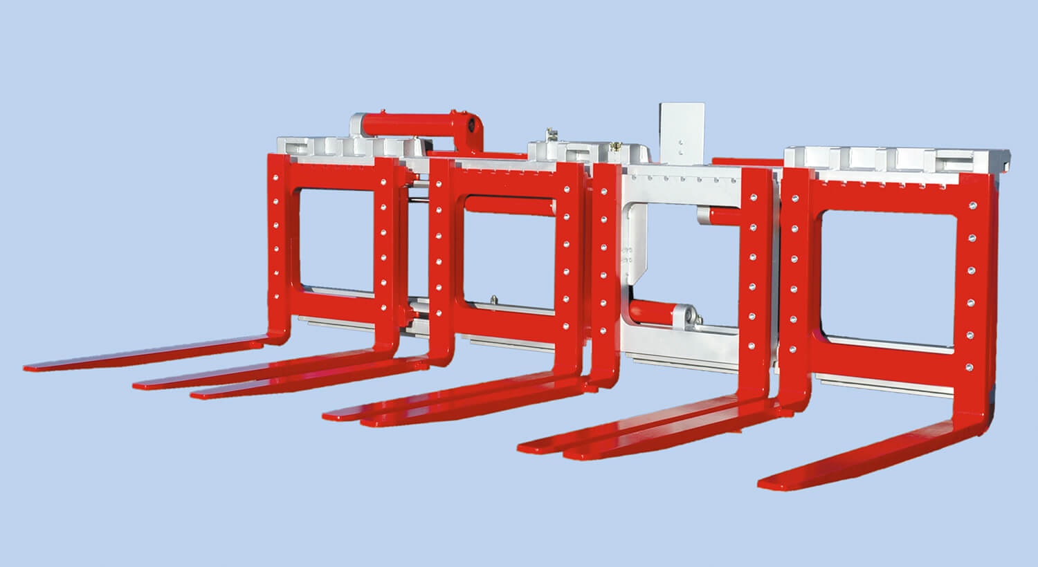 A többszörös oldalmozgató adapterek nagyban megnövelik a munkavégzés hatékonyságát. Segítségükkel 2, 3 vagy 4 raklap mozgatható egyszerre. A páronkénti villatávolság állandó.